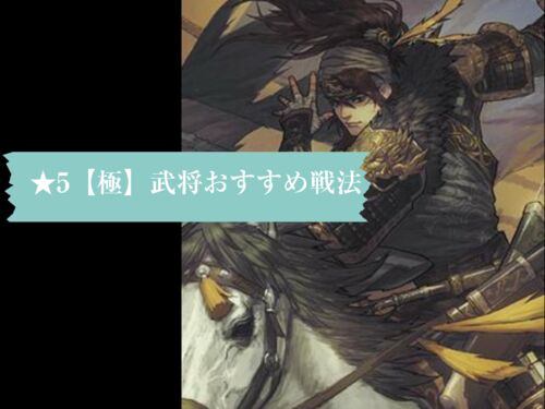 おすすめ戦法後半! 前編・中編と★3★4の戦法を紹介してきた序盤おすすめ戦法解説もついに後編になりました! 後編は残りの大技系戦法と補助戦法を紹介していくよ! 大技系戦法 3.【焔焚箕軫】…準備1ターンの後、敵軍複数に強力な策略系攻撃を行う(ダメージ…